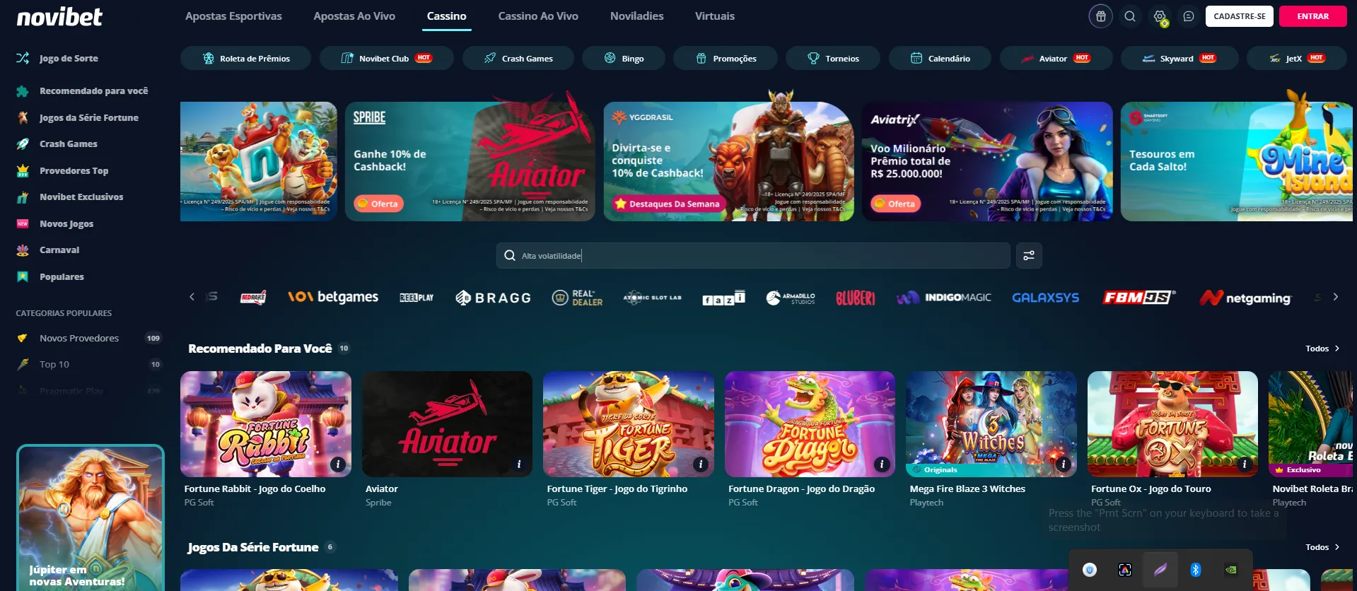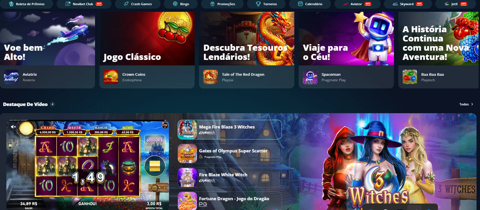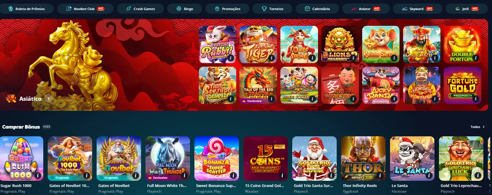 A Novibet apresenta uma biblioteca sólida, sustentada por fornecedores de alto padrão como Playtech e Evolution. Não se destaca por jogos proprietários exclusivos, mas compensa com estabilidade e diversidade confiável.